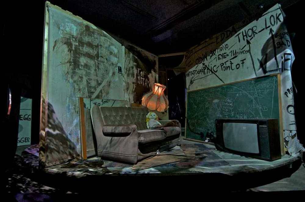 Christoph Schlingensief, Animatograph–Iceland-Edition. (House of Parliament/House of Obsession) Destroy Tensief, Animatograph–Iceland-Edition. (House of Parliament/House of Obsession) Destroy Thingvellir, 2005, installation, installation view, commissioned by Thyssen-Bornemisza Art Contemporary, photo: Victor Nieuwenhuijshingvellir, 2005, installation, installation view, commissioned by Thyssen-Bornemisza Art Contemporary, photo: Victor Nieuwenhuijs
